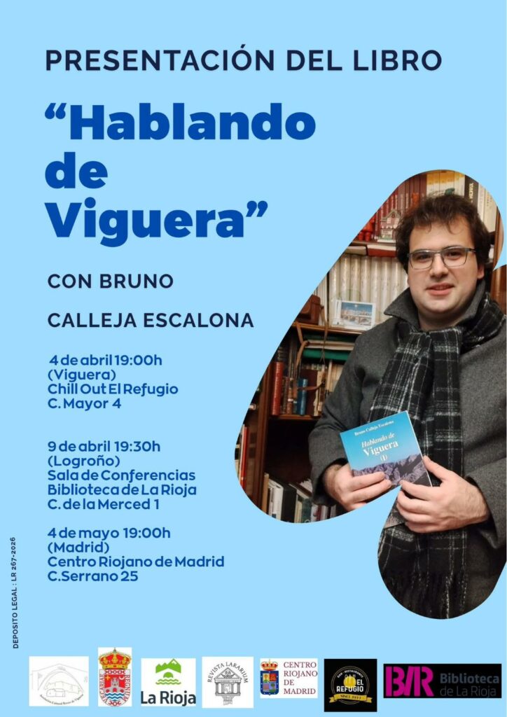 El próximo 4 de abril (Sábado Santo) a las 19 horas y en el Chill-Out de El Refugio, tendrá lugar la presentación del libro Hablando de Viguera, de Bruno Calleja Escalona, con la presencia del autor. El libro es una actualización de los datos históricos de Viguera, junto a nuevos hallazgos de distintos archivos y sobre el terreno, centrados principalmente en las iglesias de Viguera, Panzares y Castañares de las Cuevas. Promete ser muy interesante. No te lo pierdas.
